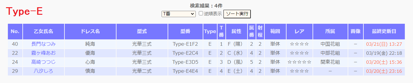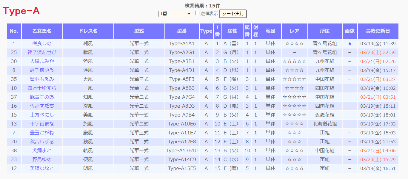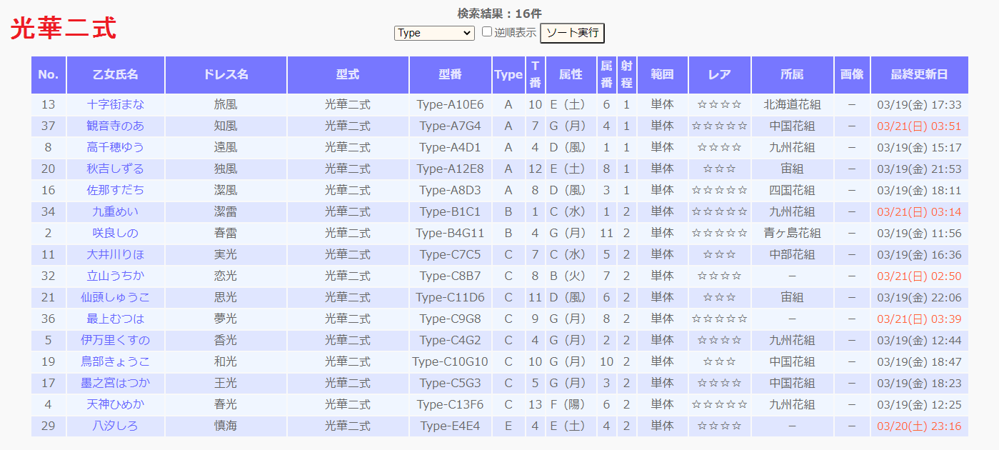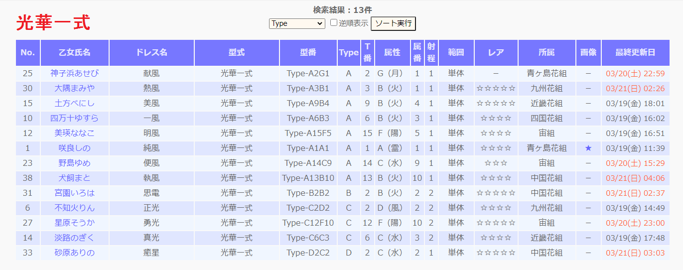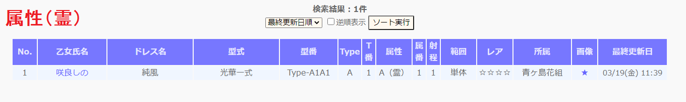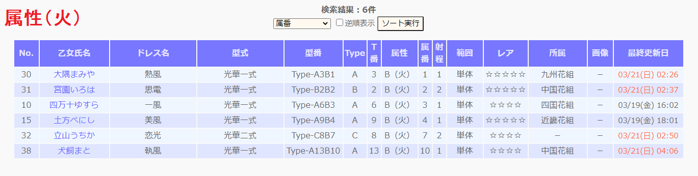 土属性:0(「星原そうか」は型番では陽属性になっているが、実際には土属性)